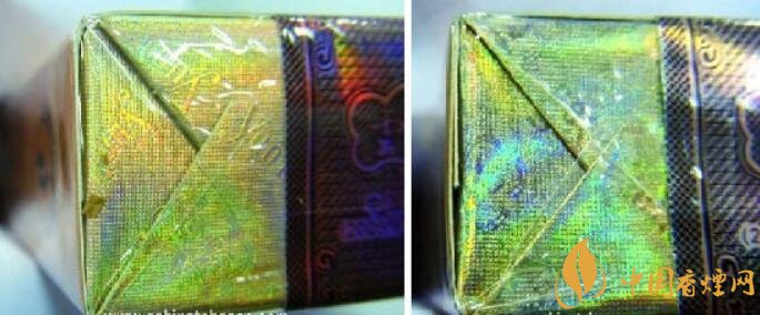 真品小盒商標紙采用專屬高端特供進口材質的紙張,適用于軟包硬化包裝工藝硬度材質,顏色以黃金色為主色;假煙小盒商標紙是普通材料,紙質低劣,比較薄、沒有硬度,顏色呈現出淡黃色,與真品顏色差異明顯。