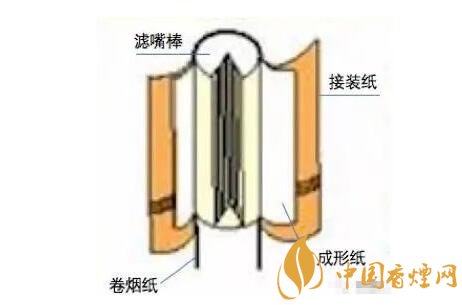 空腔濾嘴:空腔濾嘴是屬于二元復合濾嘴的一種,二元復合濾嘴通常是一段濾材為醋酸纖維,另一段為皺紋紙或生產過程中摻入添加劑(如活性炭)的醋酸纖維。空腔濾嘴是屬于后端為皺紋紙的那種,因為后端為中空,為了不使其塌陷,而醋酸纖維太軟,所以利用皺紋紙做成中空型。因其有一段規則的空腔, 形成一個低壓通道,抽吸時吸阻小, 能夠顯著提高對煙氣中焦油的過濾效率,有效地減少焦油和一氧化碳的釋放量。