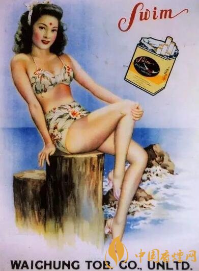 游泳牌香煙廣告在民國時期也算是前衛大膽,廣告是一位著泳裝的美女在海邊,濃裝艷抹,頭發卷曲,時髦靚麗。