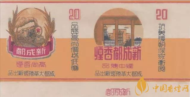 “新成都”煙標其主圖是新投入營運的成都火車站,副圖是一列火車奔馳在新竣工通車的成渝線上,并印有“抗美援朝 保家衛國”、“品質高尚 價格低廉”等字樣,既展現了新時代、新成都、新面貌,也代表了當時包含大華卷煙廠在內的整個川煙工業的家國情懷。