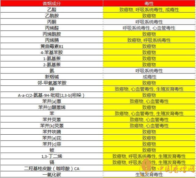 事實上,香煙里有超過7000種化學物質,其中93種明確有毒物質,78種是明確致癌物,78種!(見下表)