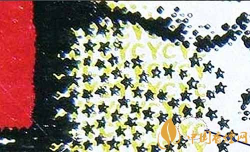 6、真煙具有微縮印刷特征,條盒及小盒在華表的中下位置,有黑色的★和黃色的YC字母,用五倍放大鏡就能看到。而假煙在這方面做的遠遠不足,五角星大多是殘缺不全的或者顏色不均勻。