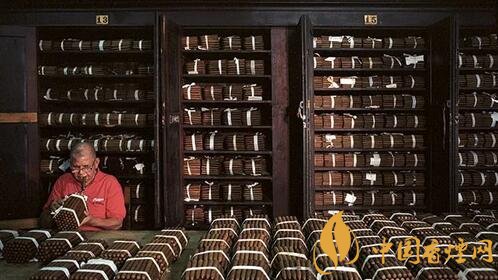 以前雪茄金庫是一個雪茄工廠的財富中心,這里存儲雪茄工廠最優質的雪茄,不管多么昂貴的雪茄都是從這里出去的。金庫的結構其實非常簡單,主要的裝置就是雪松的木架或者雪松的抽屜,雪茄卷制完成之后,通常是50支雪茄未一捆,用紙或者是綢帶包扎起來,一摞摞放在雪松木架里面,每隔一段時間檢查一下雪茄的狀態,同時會調整一下雪茄的擺放位置,來確保所有的雪茄都能有最佳的醇化結果。整個雪茄金庫里面通常嚴格保持在溫度16至20°C和65至70%相對濕度,這點根據里面保存雪茄的年份、大小、煙葉濃郁度等等會有不同。