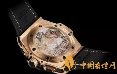 富恩特的宇舶表背面帶有富恩特雪茄經典的父子煙田造型。