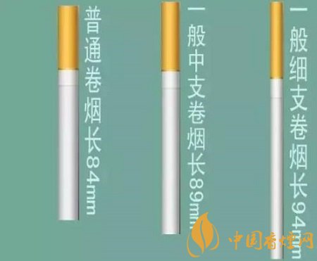 從煙支長度上看,常規卷煙長度為84mm,金中支為89mm;細支卷煙一般長94mm,中支卷煙比大部分細支卷煙短5mm。