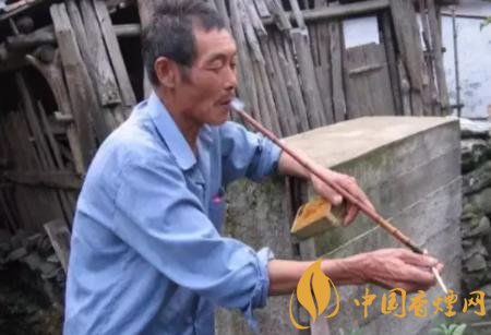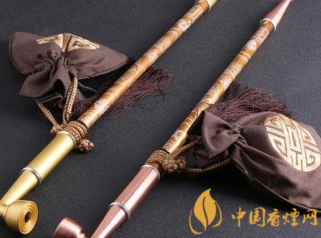 “長煙筒”的制作又可分為“簡易式”和“精致式”兩種。“簡易式”只需選擇一根大拇指粗細的毛竹,連竹腦(根部)從泥土中挖起,削去竹稍、竹枝和竹腦上的根須,視其粗細不同留1-2尺的桿,割去竹青(皮)使其光滑,然后打通桿內竹節,在竹腦部表面鉆一圓眼,使其與竹桿相通,這樣便可以在“圓眼”上裝上煙絲,供抽煙使用了。更多的人足要講求包裝的,那么就要請小爐匠(銅匠)精心制作了。