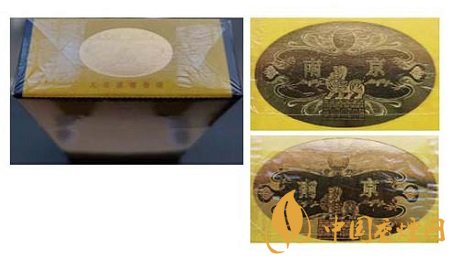 假冒卷煙:該款假冒卷煙南京字體邊緣金色輪廓線和筆畫內無小圓點,字體筆畫顏色暗淡,燙金套印有偏差。(上真下假)