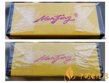 南京(九五)香煙以 “二龍戲珠”、“城墻”為主圖案,體現了古都南京特色,以代表黃河文明的黃色主色調,莊重、典雅。吸味突出自然煙香,香氣高雅綿長,煙氣柔和細膩,抽后舒適、生津、回甜、無刺激,真正達到“柔、綿、醇、香”之意境。現就該卷煙小盒鑒別方法介紹如下:
