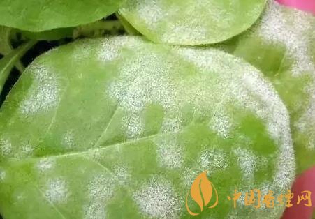 癥狀:病害最顯著的特征是葉片的正、反兩面及莖桿上著生一層白粉。初期被害葉片表面出現圓形小斑,葉片背面也產生氈狀斑塊,斑塊葉片退綠、皺縮,最后變黃變褐枯死。