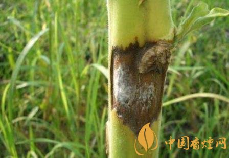 具體地看,煙草黑脛病發病莖基部呈現水漬狀黑斑,病株葉片發黃、凋萎。縱剖病莖可見髓部呈黑褐色,干縮成“筍節”狀,其間長有棉絮狀菌絲體。
