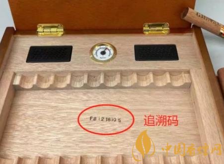 真的雪茄煙煙盒底部印有追溯碼,追溯碼包含了生產(chǎn)日期和生產(chǎn)人員的工號,假的雪茄煙煙盒底部沒有追溯碼。