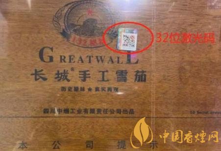 一般正品盒子正面貼有拇指蓋寬長、透明的32位激光碼防偽標(biāo)志,四川省是從2019年開始對每一家零售戶的每一條雪茄煙,都打上了該零售戶唯一的32位激光碼(但是全國各省的情況不一樣,有的地方煙草公司還沒有開始實(shí)行打激光碼)。32位碼上包含了打碼時(shí)間(能查詢卷煙銷售日期)、件碼派生號(能查詢卷煙的生產(chǎn)日期)、各市、縣煙草標(biāo)識(各市、縣的唯一標(biāo)識)、零售戶的唯一編碼(供消費(fèi)者和專賣人員辨別卷煙信息)。