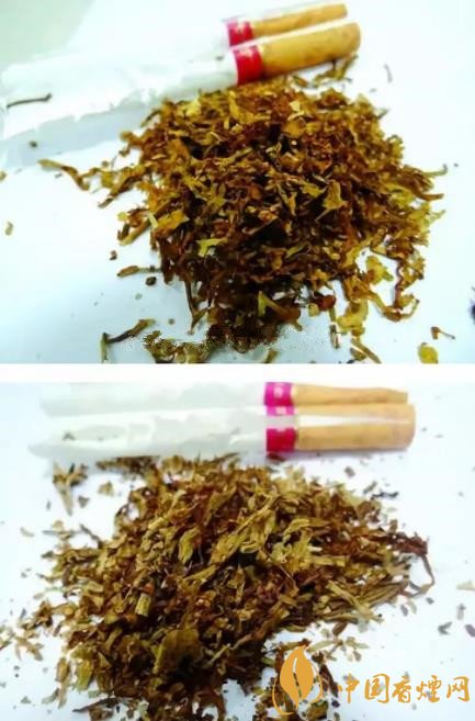 真品煙絲配比均勻,顏色呈現橙黃色,煙絲油潤性強,葉絲有彈性,葉絲摻配比例大;