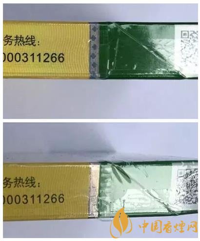 真品卷煙鋼印為機器動態打印,鋼印深淺不一、排列高低不一且間距不等、力度感明顯、輪廓清晰;假煙鋼印一般為手工靜態打印,鋼印較淺、力度感差。