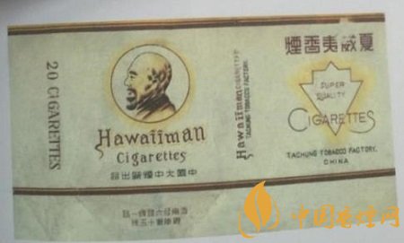上世紀四十年代,由濟南煙廠出品的“夏威夷”牌卷煙,為橫標。正版一圓框內是一中年男子的側面肖像。此人名叫陳芳,正是當時大清國駐夏威夷王國的第一任領事。夏威夷還不是美國領土時,陳芳已在當地從事商業貿易活動,并獲得成功,成為華僑首富。他帶動了夏威夷檀香木和制糖兩大行業的發展。肖像的圓環外有金黃色光暈,襯托他的與眾不同。副版上從右至左寫有“夏威夷香煙”,其下畫有一倒置的盾牌框,框內寫有“Super Quality”,即高品質,外圍亦有金黃色光暈,與正版的光暈呼應。煙標的底部還留有煙廠的詳細地址。