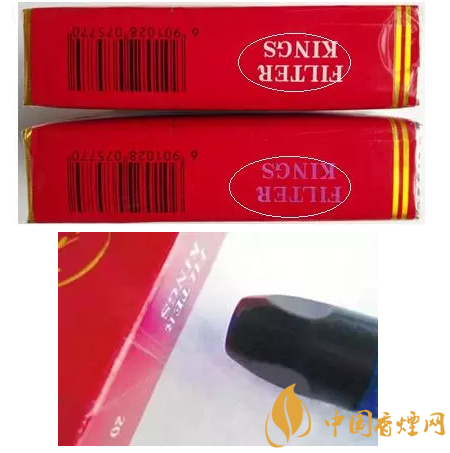 真煙“FILTER KING”字樣經紫外光照射后由白色變成紫紅色,停止照射后,紫紅色會逐漸消退;“FILTER KING”字樣經紫外光照射后不變色的為假煙。.鑒別真假“中華”時需要借助紫光燈、放大鏡等檢驗工具。