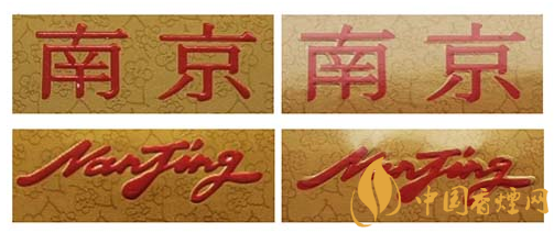 假冒卷煙:該款假冒卷煙南京字體與拼音字母筆畫凹凸感差,顏色暗淡,套印有偏差。(左真右假)