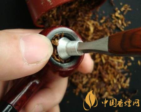 新晉煙斗愛好者最適宜的是采用分層法裝煙草,即將煙草分成五份,第一步裝五分之一,用嬰兒之力將草放平均,保持松散狀態;第二步裝五分之三,用少女之力將草均勻地放入;第三步裝五分之一,用男人之力,使草保持平實,再用壓棒輕輕壓平,然后點燃。分層法裝填,可以使煙草及煙斗保持良好的通透性,既抽吸順暢又養斗。請記住,裝填煙草最多不能超過斗缽80%的位置,否則容易燒灼煙斗上沿。