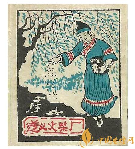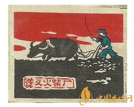 國榮火柴廠出品于同期的“大地牌”(圖3)火花,在朝霞滿天間有白云,以及數座民居背景的映襯下,突出了一名頭戴斗笠的農夫,一手扶犁一手驅牛辛勤翻耕農田的場面。