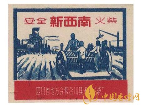 此后的50年代,地方國營宜賓市火柴廠出品的“耕牛”(圖2)火花,突出了一名少數民族農夫右手扶犁,左手拿著牛鞭驅趕牛兒加油翻耕農田的場景。