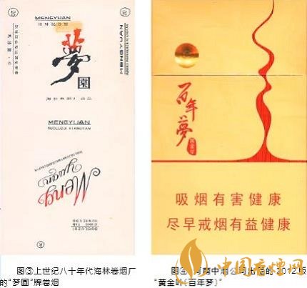 如新邵卷煙廠的“夢”(見圖①),菏澤卷煙廠的“金夢”(見圖②),貴定、海林卷煙廠的“夢圓”(見圖③),興義卷煙廠的“夢歸”,許昌卷煙廠的“夢幻”,安陽、當(dāng)陽卷煙廠的“藍(lán)夢”,蓬安卷煙廠的“藍(lán)的夢”,綿陽卷煙廠的“九寨溝夢幻”,阜陽卷煙廠的“東方夢”,銅仁卷煙廠的“夢中情”,太原卷煙廠的“夢佳麗”,紅安卷煙廠的“夢之花”,四平卷煙廠的“夢妮”,鳳凰卷煙廠乾州分廠“夢斯”等。另一類是取材于古代文學(xué)作品和傳說。如南京卷煙廠的“夢都”,新晃卷煙廠的“紅樓夢”,鐘山卷煙廠的“夢”,廣水卷煙廠的“黃粱夢”,長春卷煙廠的“夢仙草”,許昌卷煙廠的“夢蝶”等。