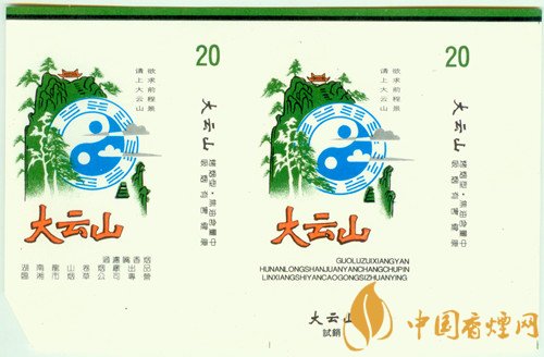 “太極八卦”在為道教所利用的同時,道家還認為“太極八卦”有神通廣大、鎮懾邪惡的功效。因而以道教名山為主題的煙標就少不了“太極八卦圖”。 上世紀80年代,湖南龍山卷煙廠出品的“大云山”煙標,主、副版不僅突出描繪了青翠欲滴的大云山峰,而且凸顯出“太極八卦圖”,同時在其右上方還印有“欲求前程景 請上大云山”字樣。