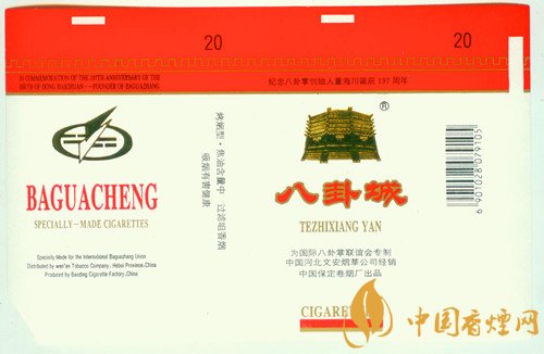 此外因在運動時分為四正四隅八個方位,而與八卦圖中的卦象相似而得名的八卦掌。名列我國著名三大內家拳的八卦掌,以掌法變換和行步走轉為主,將武功與導引吐納融為一體,內外兼修的拳術,又稱“游身八卦掌”“八卦連環掌”。“八卦掌”系清代河北文安縣朱家塢人董海川在江南游歷時得到道家修煉的啟示,結合武術加以整理而成。上世紀90年代,河北保定卷煙廠曾于出品過“八卦城”煙標,這枚“為國際八卦掌聯誼會專制”的煙標,主版印有“紀念八卦掌創始人董海川誕辰197周年”字樣。