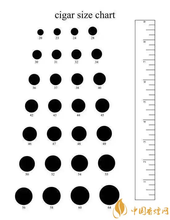 雪茄環徑,古巴當地特定的說法是,用環徑(Ring gauge)表示雪茄頭部的直徑,1 環徑= 1/64 英寸,約合 0.04 cm=0.4 mm。