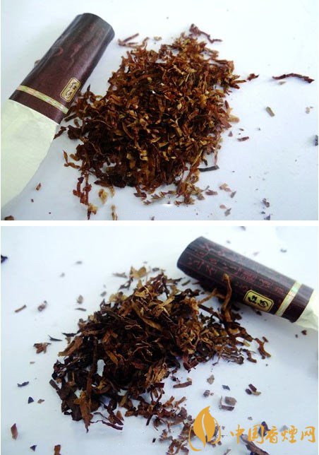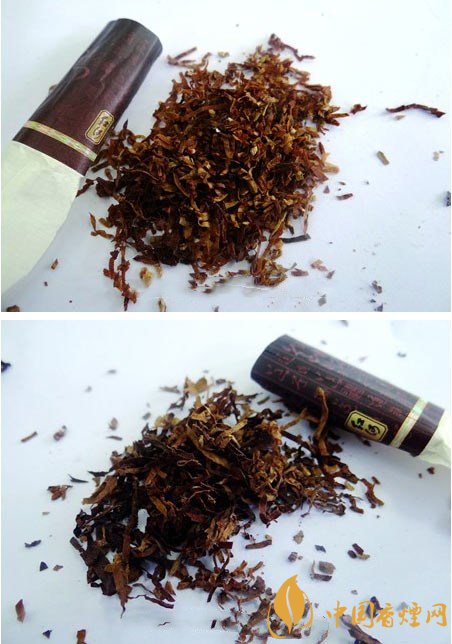 四、煙絲配比結構差異對比:真品煙絲顏色金黃,自然醇化期長,有油潤性,富有彈性;假煙顏色淺黃,大量摻配工業香精香料,無油潤性,煙絲干直易碎,與真品煙絲特征存在明顯差異。
