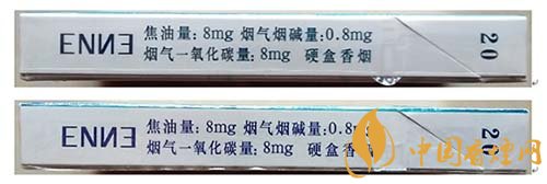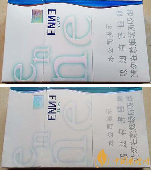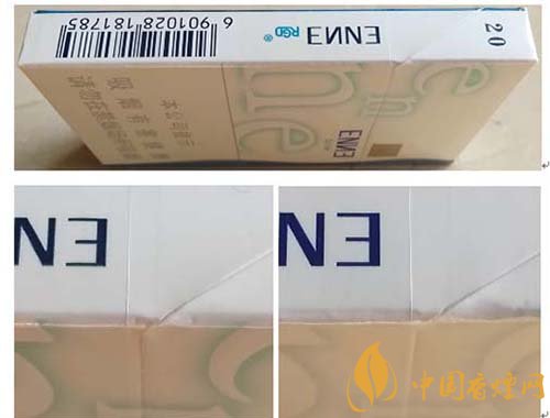 (4)真品卷煙“enne”小寫字母筆畫立體感強。該款假冒卷煙小寫字母筆畫無立體感。