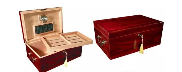 現在雪茄保濕盒一般采用后兩種方式,應用最廣泛,也是最普通的是第二種,使用中等密度纖維板作為主體,膨脹度較小,用西班牙雪松木皮作為內襯又能比較好的存儲雪茄。那些比較昂貴的雪茄保濕盒通常會采用第三種方式,內襯是西班牙雪松木皮,主體結構用的是硬木,給硬木皮上高光漆更容易些,同時也更有質感。另外一個原因是很多硬木本身就是昂貴的。