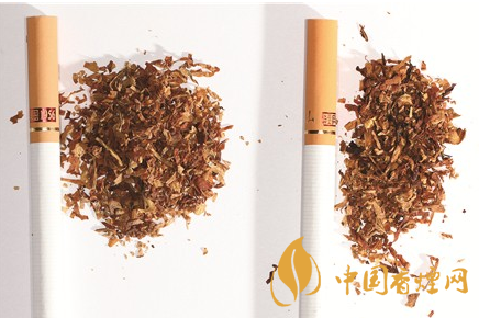 煙絲差異對比:真煙煙絲切絲寬度與長度適中均勻,顔色呈橘黃色,光澤油潤性好,柔軟疏松,煙絲中含碎末少,煙絲結構為葉絲、膨脹梗絲和造紙法再造煙葉;假煙制絲工藝粗糙,一般使用未經處理的劣質煙絲,色澤發暗無光澤,呈暗褐色,煙絲中含碎末較多,煙絲結構一般為葉絲和沒有經過膨脹處理的梗絲,無造紙法再造煙葉,煙絲結構與真品特征存在明顯差異。