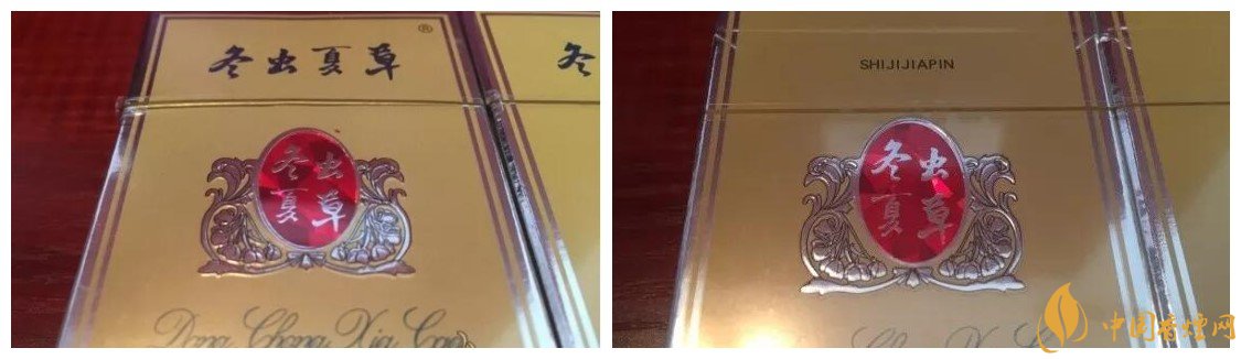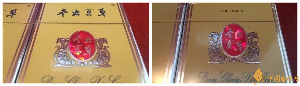 左假右真,煙支努嘴色澤不同,正品顏色偏深,質(zhì)感好,仿品顏色偏淺;正品冬蟲夏草四個(gè)字整體比仿品字體大一圈,且正品和仿品“夏”、“草”兩字書寫上有明顯區(qū)別。