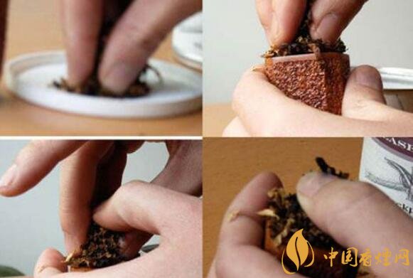 很多人都說“塞”煙草,“塞”這個字是抽煙斗最壞的觀念之一,裝煙草用塞的煙斗抽法,這一斗煙就不好抽了。煙斗怎么抽?將揉松的煙草輕輕搓成小球放入斗底在煙草輕裝到斗頂齊平,用工具將煙草下壓至五六分斗就可以了。用手指壓煙草檢查是否有彈性,若無彈性表示太緊,一定要取出重裝;若仍稀松,則再輕壓幾下。
