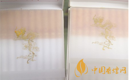 小盒商標印刷工藝差異對比:真品小盒正面套印定位燙金“飛龍”圖案鱗片清晰,從頭至尾都能看到定位燙金工藝,紅色貫穿整個龍身,“鱗片”是雪里透紅,栩栩如生;假煙套印定位燙金仿制較差,鱗片無法達到真品的印刷工藝水平,印刷工藝與真品商標圖案差異明顯。