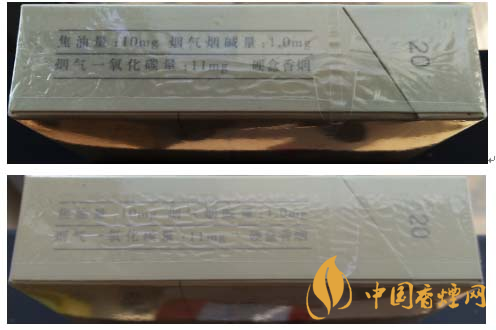 真品卷煙側面透明紙燙封,兩端會有卷煙包裝機烙鐵燙封時留下的收縮狀痕跡,中間透明紙燙封收縮自然、柔順。該款假冒卷煙兩端無收縮狀痕跡,中間燙封呈現“魚鱗”狀痕跡。(圖上真下假)