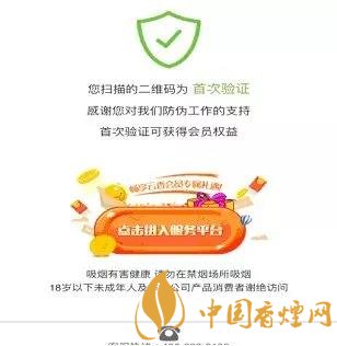 當(dāng)時(shí)尚的細(xì)支云煙(神秘花園)與先進(jìn)的動態(tài)二維碼技術(shù)結(jié)合,一物一碼,讓消費(fèi)者輕松識別卷煙真?zhèn)?,幫助大家?shí)現(xiàn)云煙神秘花園防偽。這種云煙神秘花園驗(yàn)證碼防偽只要打開手機(jī)微信中的掃碼功能,對商標(biāo)側(cè)面二維碼掃碼:掃碼后,按提示,輸入小盒開蓋處的6位驗(yàn)證碼,如下圖: