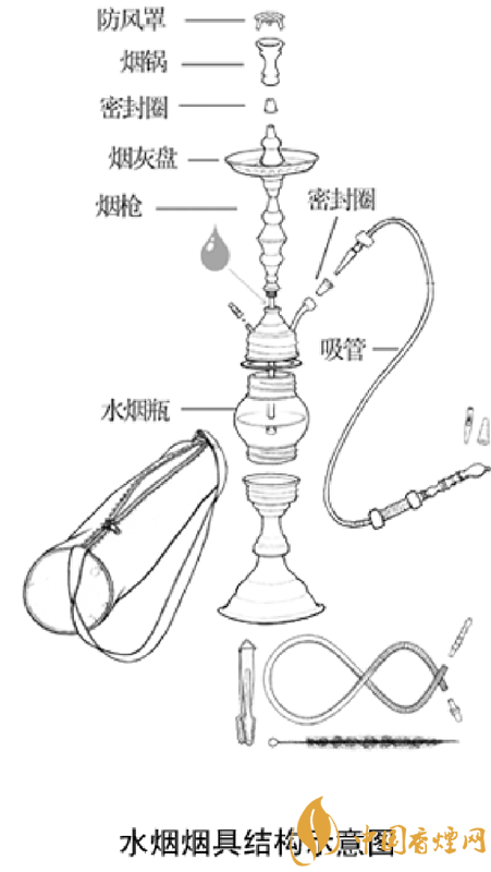 水煙部件可分為陶瓷鍋 ,碳盆,頂部橡膠密封圈,水煙主體桿子,空氣閥門,瓶子鏈接橡膠圈,水煙瓶子,水煙管,那么我們在對水煙壺怎么做了解之前,我們先來了解一下水煙壺怎么安裝。
