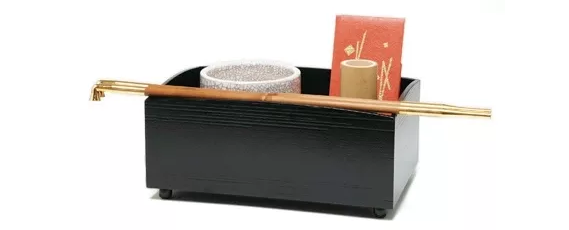在利修時代,煙草盆并不會使用在茶道中。從江戶時代開始,宗旦、遠州、宗和一帶開始將其加入了茶道中。煙草盆是做什么的?到了江戶時代的后期,煙草盆已經成為茶道中不可或缺的一步了。