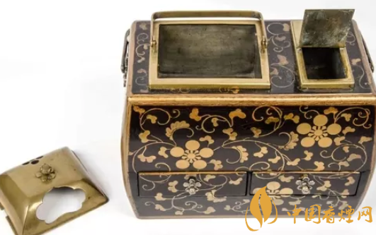 煙草盆主要有兩種形式——箱式和籃式。籃式煙草盆比較簡單,就是一個托盤與一個提手;而箱式的煙草盆往往注重裝飾比較華麗,除了頂部的托盤,下面還有很多小抽屜便于收納用具和器皿,看起來相當講究。